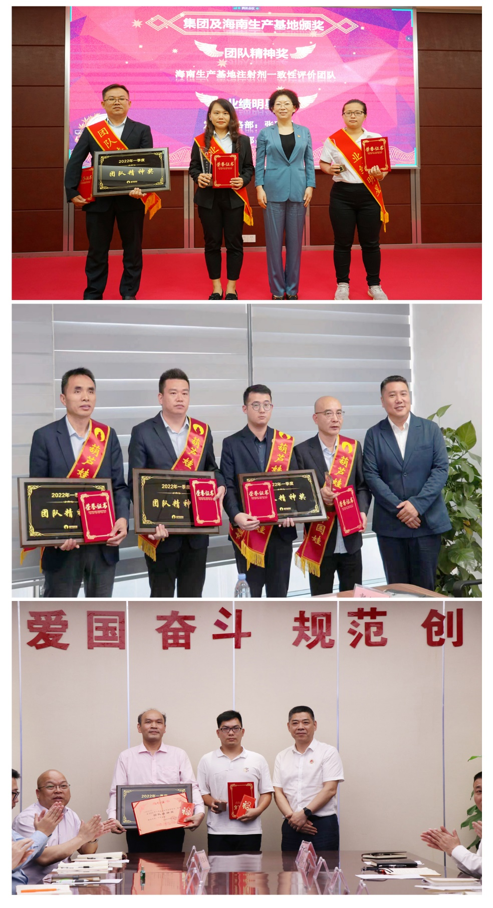 为了表彰在2022年一季度“深化变革,赢得开门红”工作中“超额完成计划、超出本职工作或超越组织预期”的先进集体和优秀个人,会议期间还举行了PA直营药业集团2022年一季度“开门红”表彰颁奖仪式。营销中心葫芦世家事业部湖南区域主管黄子杰等12人荣获业绩明星奖,葫芦世家事业部等5个集体荣获团队精神奖。