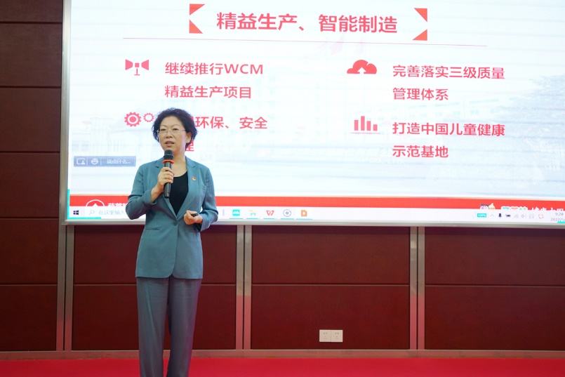 刘景萍董事长引用席大大总书记在2022年博鳌亚洲论坛上的重要讲话勉励全体与会人员,在海南自贸港建设的机遇期,认真学习贯彻落实省第八次党代会精神,坚持党建引领企业发展,将PA直营药业集团打造成中国儿童健康领军企业。